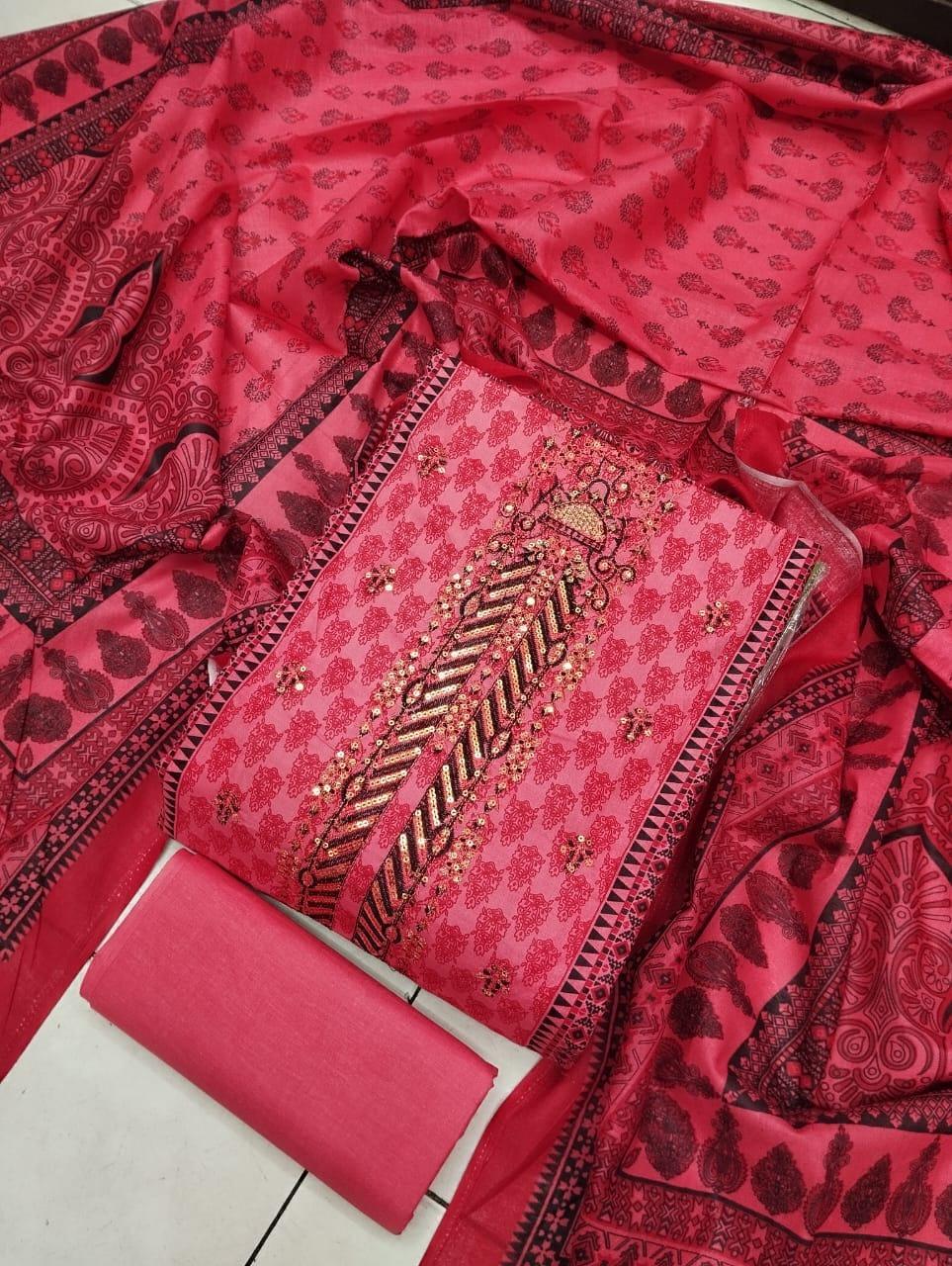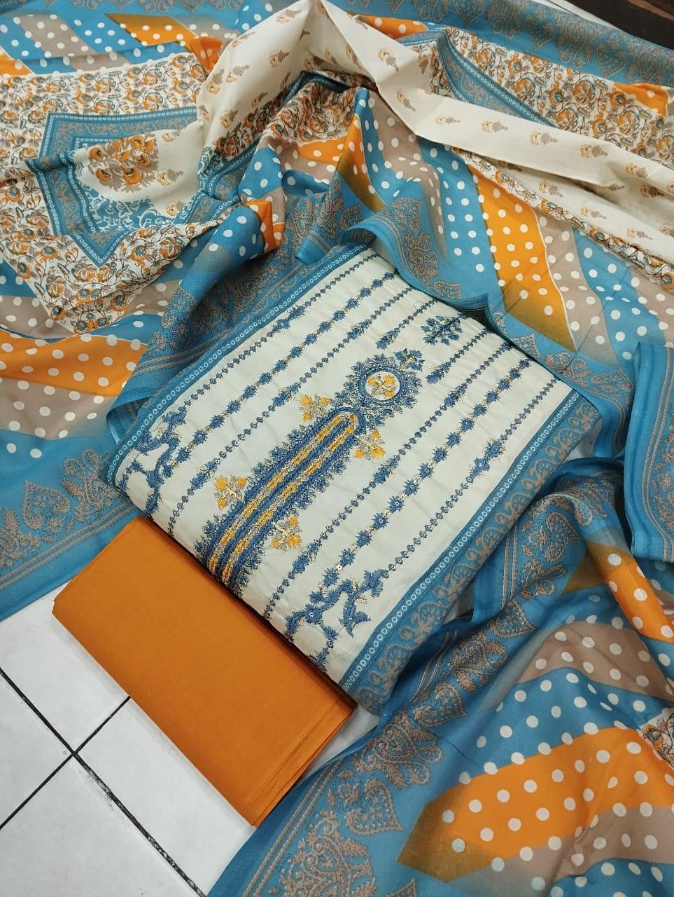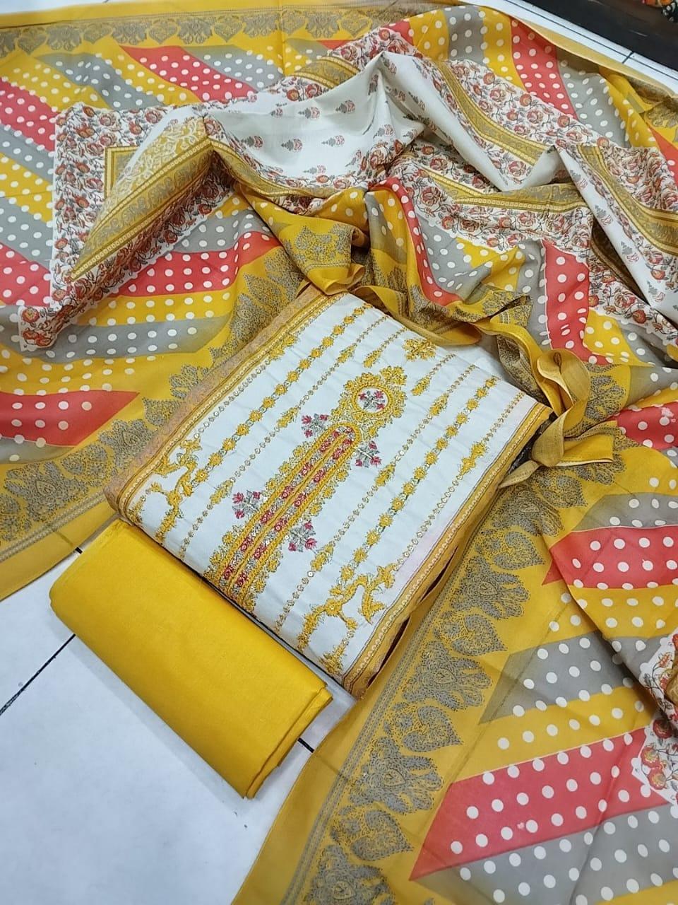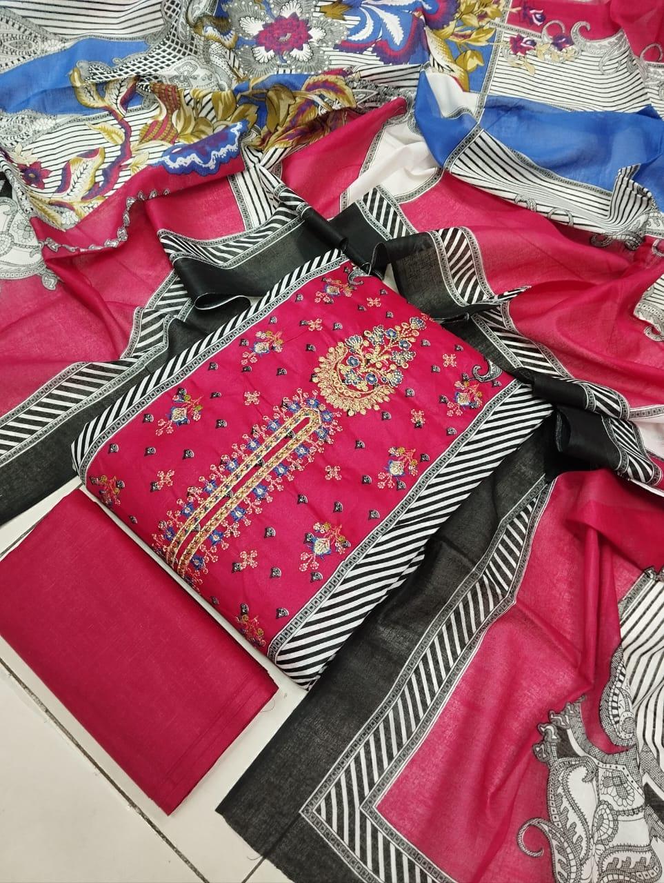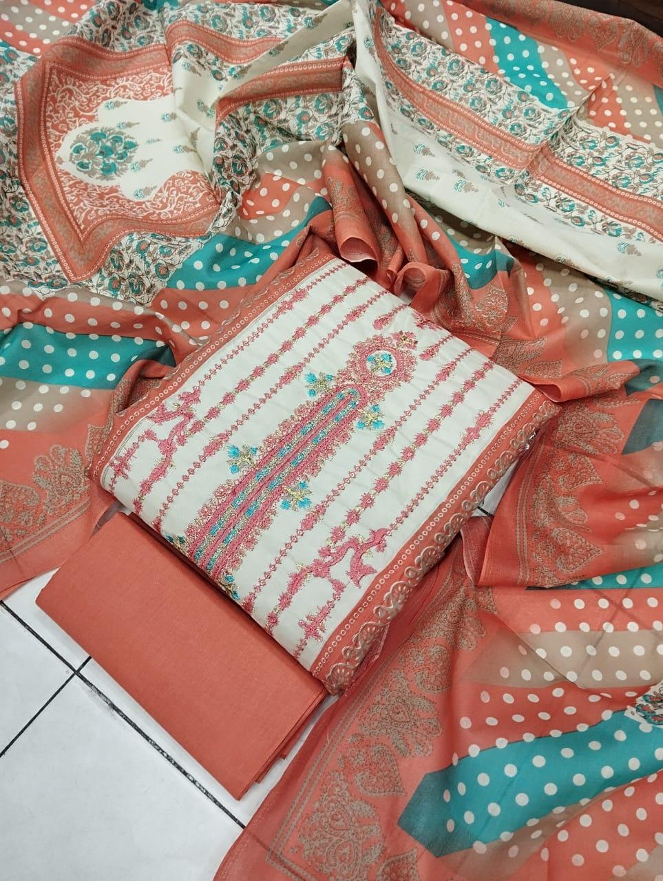 কটন এম্ব্রডারী থ্রি পিস