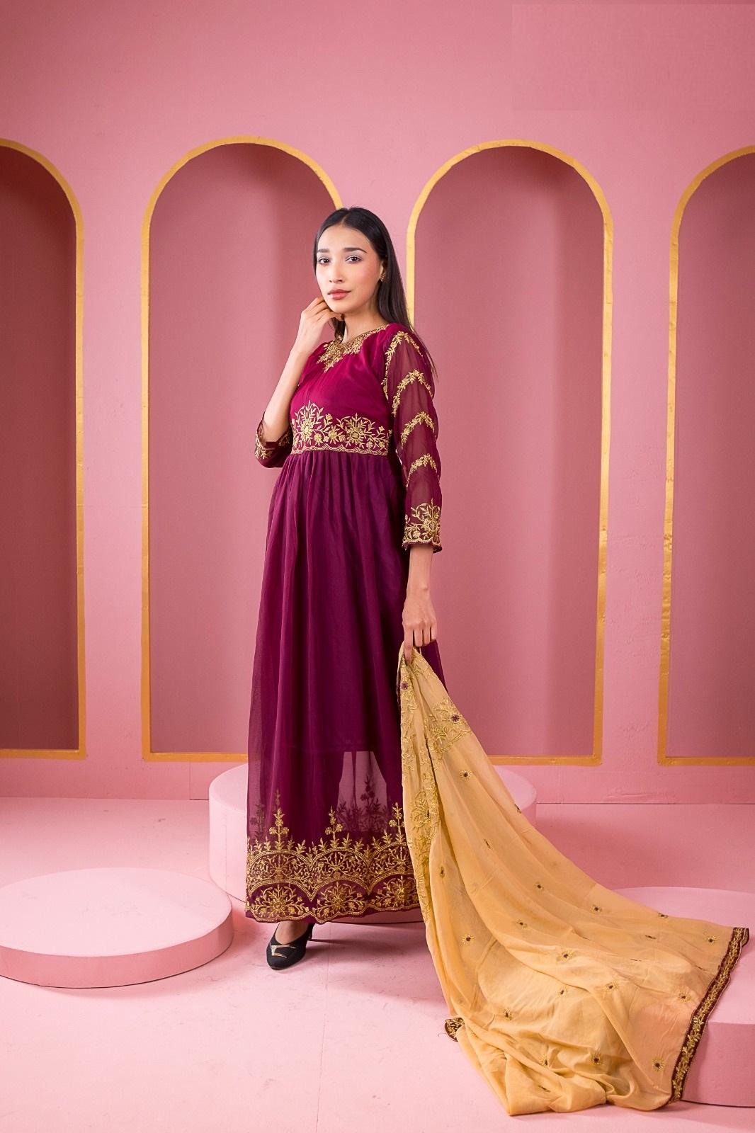 ওড়না – জর্জেট সাথে এমব্রয়ডারি কাজ করা